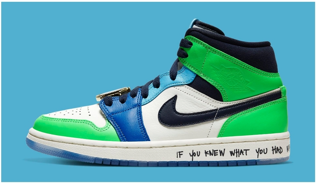 바로 이제품 조던1 미드 멜로니 에샤니 제품입니다. 진짜 영롱하다 라는 말이 딱맞는 제품인 것 같습니다. 이제품은 멜로니 에샤니 라는 쥬얼리 디자이너와 협업을 한 모델이라서 이름에 멜로디 에샤니 라는 이름이 붙었습니다. 이제품의 정식 명칭은 에어 조던 1미드 피어리스 멜로디 에샤니 입니다. 발매일은 2019년 11월 15일 입니다. 발매가는 한국기준 159000원에 발매가 되었습니다.
