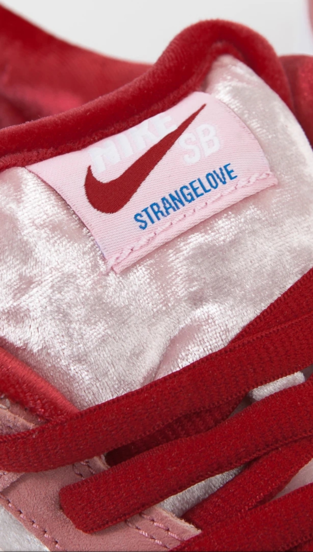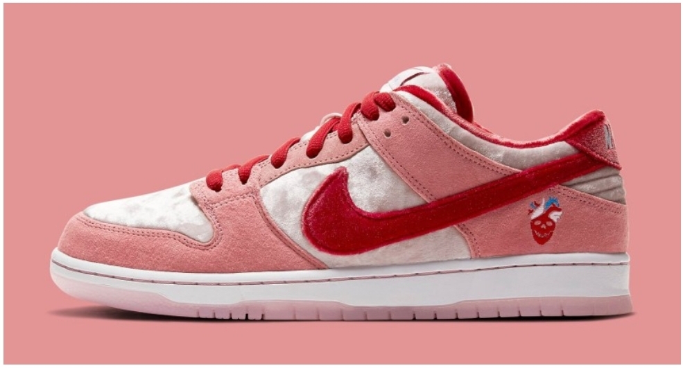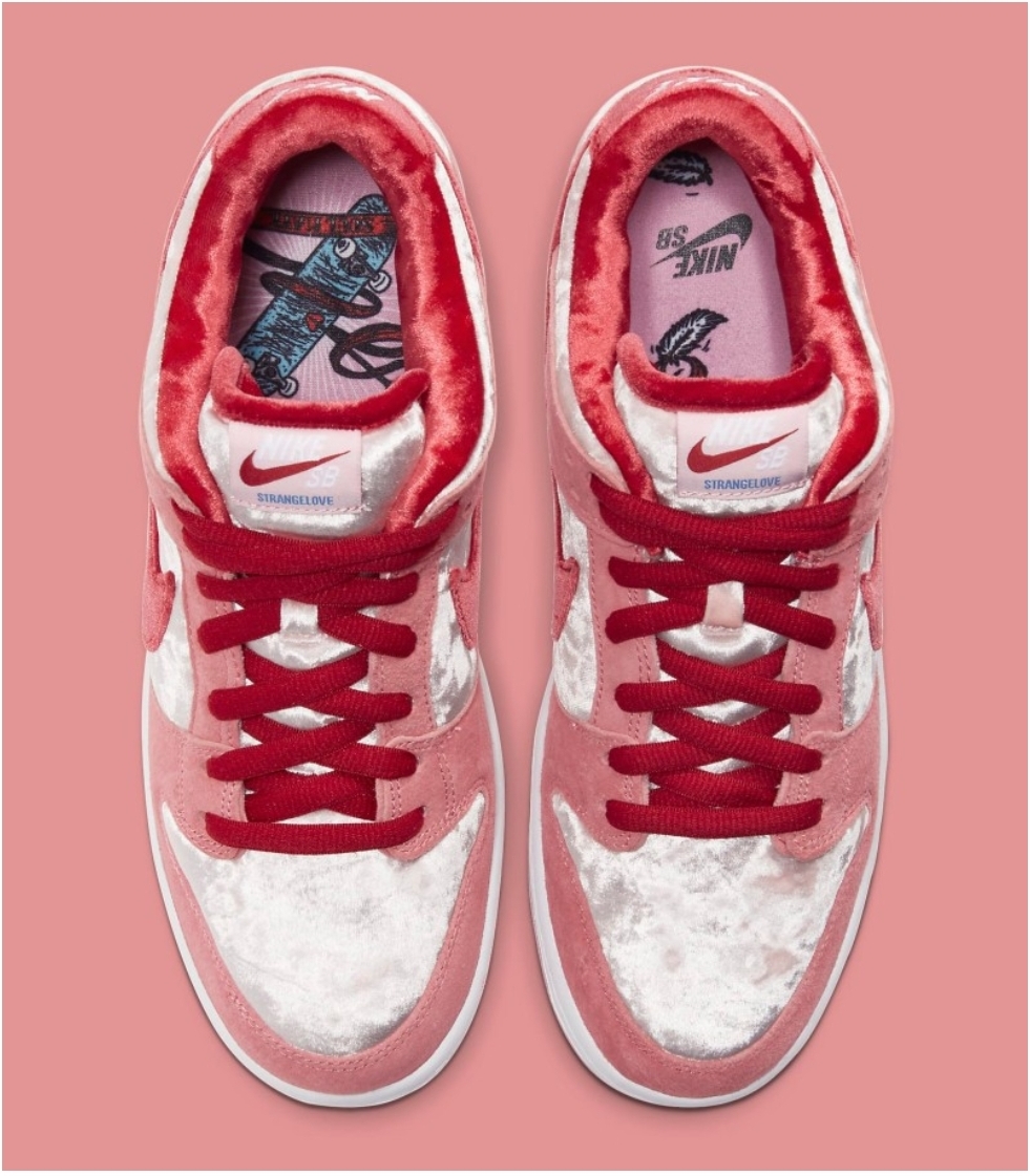 바로 이제품 나이키 SB덩크 스트레인지러브 입니다. 이제품은 스트렐인지러브 라는 스케이드보드샵과 나이키가 협업을 해서 만든 제품입니다. 그리고 이제품은 발렌타인 데이를 겨냥해서 나온 제품입니다. 정식명칭은 나이키 SB덩크 로우 스트레인지러브 입니다. 발매일은 발렌타인 데이를 겨냥해서 나온 제품인만큼 발렌타인데이 하루전인 2020년 2월 8일날 발매가 되었습니다. 발매가는 한국기준 119000원입니다.
